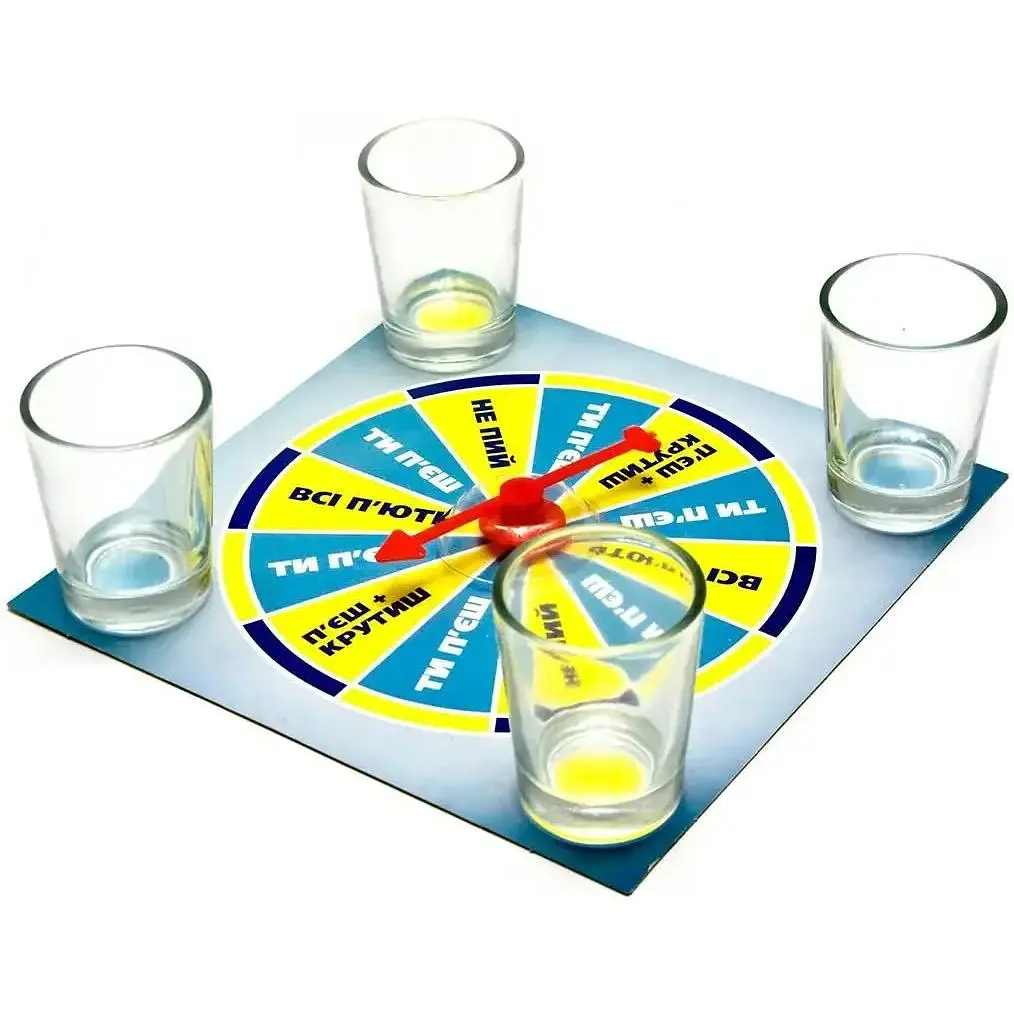 Ігровий набір "Крути та пий" на 4 чарки. Розмір ігрового поля 15х15х4 см.