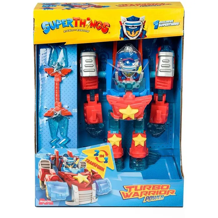 Ласкаво просимо в місто Кабум! Це місце, де живуть і б'ються герої та лиходії — СуперСингс. У кожного є суперздібності, які вони завжди готові застосувати. Приготуйтесь до запеклих батлів! У місті з’явився неймовірний герой — Супербот Трансформер Сила! Він виступає на боці добра й готовий захищати місто від лиходія Супербота Трансформера Швидкості з допомогою незвичних мечів 2 в 1! Хто ж переможе у запеклому протистоянні? Ультрамеч 2 в 1: використовуйте у форматі двостороннього меча, або ж роз’єднайте посередині й у вас буде два окремих.