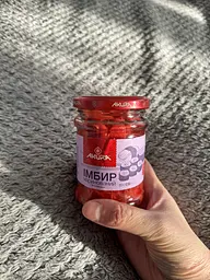 Смачний імбир в скляній тарі, дуже зручно, можна використати повторно. Імбир гостренький (як і повинен бути). Цілком задоволена