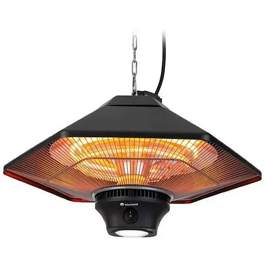 Променевий обігрівач blumfeldt Heat Hexa легко підвішується до стелі за допомогою ланцюга довжиною 55 см і забезпечує вам і вашим гостям потужність до 2000 Вт швидко та ефективно. ІК ComfortHeat не тільки дуже швидко доставляє тепло, але завдяки високоефективному алюмінієвому рефлектору та довгохвильовому інфрачервоному випромінюванню, вона також виділяє його спеціально для людей та предметів поблизу, не нагріваючи повітря. Насолоджуйтеся затишним теплом з першої секунди! Легким дотиком до вбудованої сенсорної панелі ви можете за лічені секунди вибрати між трьома рівнями нагріву - 800, 1200 або 2000 Вт і легко задовольнити потреби ваших гостей. Або зручно керуйте нагрівальною лампою за допомогою дистанційного керування. Плануйте вечерю на балконі або терасі, не турбуючись про температуру, тому що відразу після ввімкнення галогенні нагрівальні елементи виробляють приємне, домашнє та безпечне тепло без тривалої фази розігріву. Виготовлений зі сталі гексагональний інфрачервоний обігрівач Blumfeldt Heat Hexa не тільки міцний, але й елегантний. Його вбудована світлодіодна лампа може вмикатися окремо та забезпечує яскравість у темний час доби. Для безпечного використання поза приміщенням корпус захищений від бризок за стандартом IP34 і може використовуватися без будь-яких проблем навіть у вологий вечір.