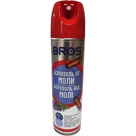 Інсектицидний аерозоль від молі Bros - це високоефективний інсектицидний засіб для ефективного знищення платтяної молі та її личинок у шафах, комодах, гардеробах та інших місцях зберігання одягу. Не тільки знищує міль, але надовго захищає від її повторної появи. Має приємний і м'який аромат лаванди.