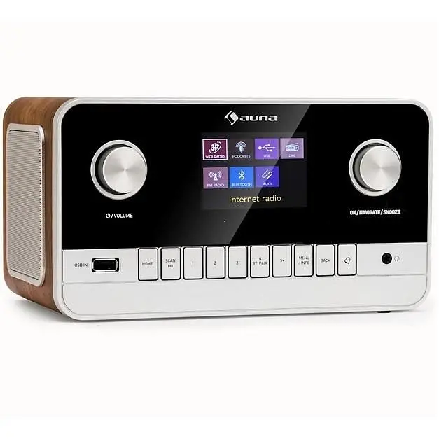 Цифровий і глобальний прийом: завдяки функції будильника ви можете починати кожен день з улюбленої музики завдяки інтернет-радіо auna Connect 100 MKII .