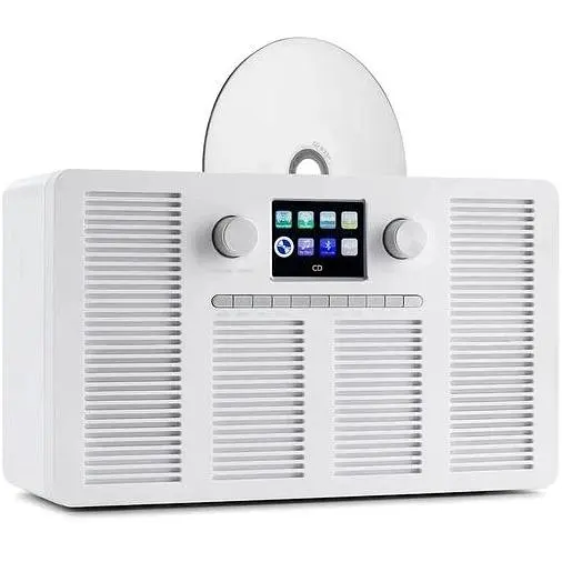 Обладнаний інтерфейсом WLAN, безліч станцій з усього світу можна приймати через інтернет-радіо через інтернет-радіо Vertico без перешкод. DAB+ і FM-радіотюнер доповнюють функції SmartRadio і відповідають як за цифровий, так і за аналогове приймання всіх станцій безпосередньо поруч. Вбудований програвач компакт-дисків також оживляє всі колекції компакт-дисків і збагачує вітальню, кухню, ванну кімнату або гараж вашими улюбленими хітами. Керування пристроєм завжди зрозуміле завдяки 2,4-дюймовому дисплею HCC (висока контрастність і колір) і здійснюється вручну або просто через застосунок UNDOK. Завдяки функції Bluetooth всі інші аудіофайли також можна відтворювати без дротів і зручно через смартфон або планшета через інтернет-радіо auna Vertico з програвачем компакт-дисків. Потужний набір функцій пристрою переконливо доповнюється функцією будильника, таймером вимкнення та роз'ємами USB, AUX і навушників, що робить інтелектуальну звукову коробку незамінним предмет меблів.