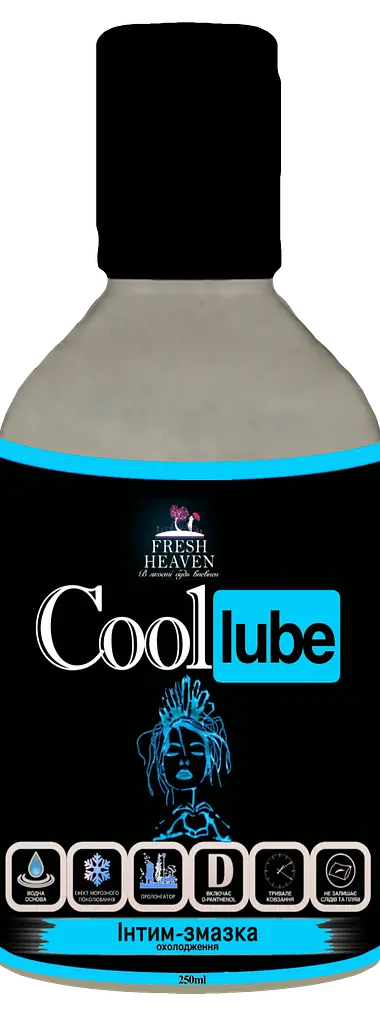 Інтим-змазка (лубрикант) "Cool Lube" ТМ "Fresh Heaven", базується на водній основі, для вагінального застосування із ефектом охолодження та пролонгації статевого акту. Засіб прозорий на вигляд та підходить для всіх типів шкіри. Має нейтральний смак, аромат та лагідний рівень pH. Унікальна рецептура продукту розроблена в лабараторії Німеччини, що гарантує високу якість готової продукції.