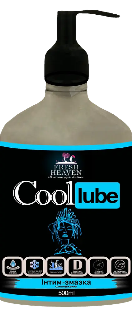 Інтим-змазка (лубрикант) "Cool Lube" ТМ "Fresh Heaven", базується на водній основі, для вагінального застосування із ефектом охолодження та пролонгації статевого акту. Засіб прозорий на вигляд та підходить для всіх типів шкіри. Має нейтральний смак, аромат та лагідний рівень pH. Унікальна рецептура продукту розроблена в лабараторії Німеччини, що гарантує високу якість готової продукції.