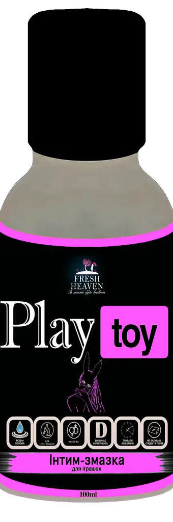 Інтим-змазка (лубрикант) "Play Toy" ТМ "Fresh Heaven", базується на водній основі, для універсального (анально-вагінального) застосування та взаємодії з інтим іграшками. Засіб прозорий на вигляд та підходить для всіх типів шкіри. Має нейтральний смак, аромат та лагідний рівень pH. Унікальна рецептура продукту розроблена в лабараторії Німеччини, що гарантує високу якість готової продукції.