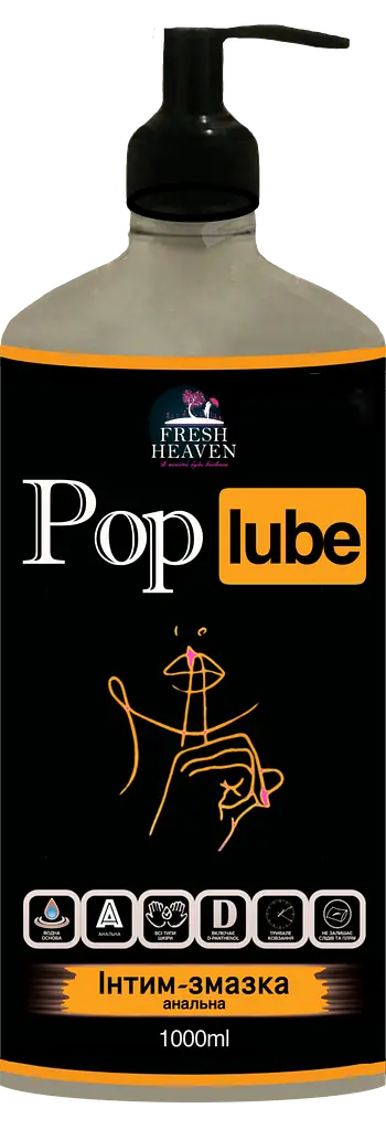 Інтим-змазка (лубрикант) "Pop Lube" ТМ "Fresh Heaven", базується на водній основі, для анального застосування. Засіб прозорий на вигляд та підходить для всіх типів шкіри. Має нейтральний смак, аромат та лагідний рівень pH. Унікальна рецептура продукту розроблена в лабараторії Німеччини, що гарантує високу якість готової продукції.