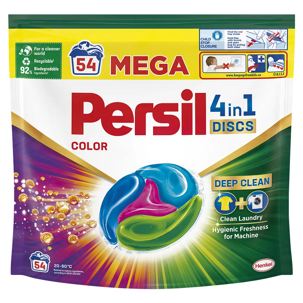 Капсули для прання Persil Discs Color не тільки забезпечує досконалу чистоту білизни, а завдяки оновленій формулі допомагає пральній машині залишатися гігієнічно свіжою. Persil глибоко проникає у тканини, видаляючи найменші молекули плям для бездоганного результату та яскравості одягу.