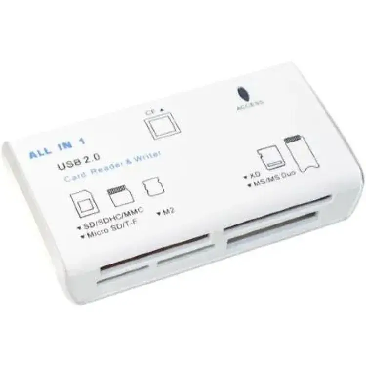 Невеликий, але практичний: цей кардридер зручний для тих, хто працює з кількома типами карт пам’яті. Підключили до порту USB — і файли на місці. На практиці це означає: ніяких запитань про сумісність, якщо у вас є фотоапарат, телефон або старі накопичувачі — Atcom TD2051 читає їх без проблем. ОглядAtcom TD2051 підтримує microSD, SD, MS, M2, xD та CF — універсальний набір для фотографів, монтажерів і простих користувачів. Корпус у білому кольорі виглядає акуратно і пасує до більшості ноутбуків і десктопів. Це USB 2.0 — не найшвидший стандарт сьогодні, але стабільний і сумісний з переважною більшістю комп’ютерів.Кому підійдеФотографам-аматорам, котрим потрібно швидко перечитати картку з фотоапарата. Користувачам, що працюють із різними форматами карт пам’яті у «домашніх» умовах.Тим, хто шукає бюджетний варіант у категорії товарів для зчитування даних.