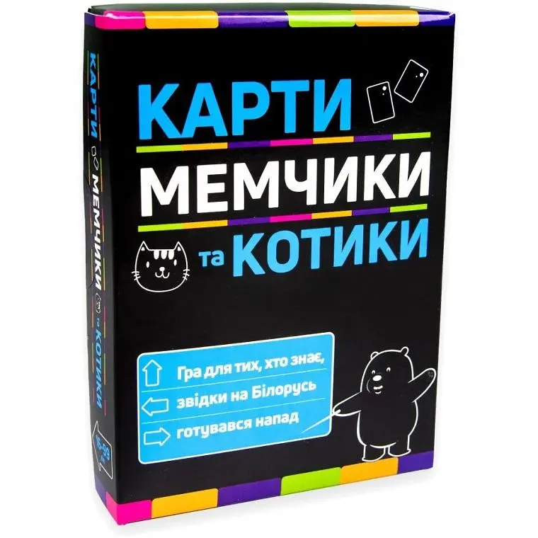 Викладайте картку з картинкою та підбирайте до неї вислів. Той, хто створить найсмішніший мем, заробляє бал. "Карти, мемчики та котики" Strateg (30729) стане неодмінним атрибутом ваших вечірок.