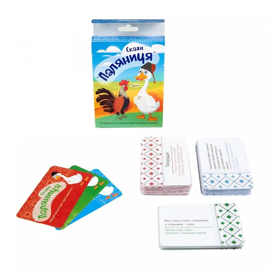 Знаєш свою мову – знаєш свою культуру. Перед вами мовна гра, яка допоможе натренувати вміння правильно та чітко вимовляти різні звуки та літери. Адже не даремно скоромовки називають ще й чистомовками. Ці коротенькі віршики допоможуть добре розвеселити, а картки зі словами допоможуть отримати нові знання та перевірити один одного на кмітливість. Упаковка: коробка Розмір коробки: 2,5 x 14 x 9 см