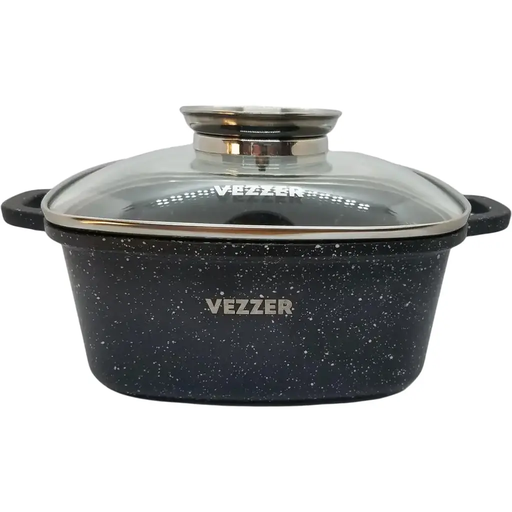 Каструля Vezzer - це надійний кухонний посуд, виготовлений із високоякісного литого алюмінію з антипригарним мармуровим покриттям, що забезпечує довговічність і комфорт у використанні.