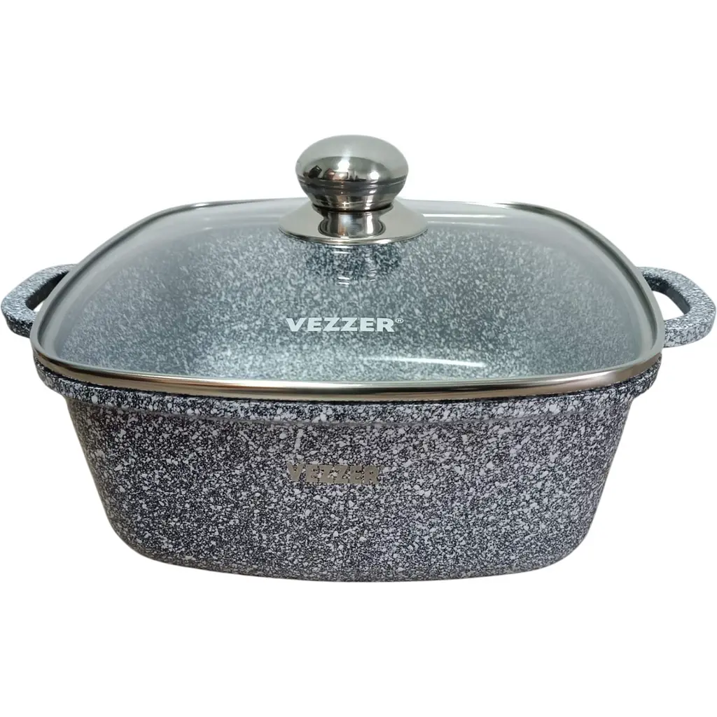 Каструля Vezzer - це надійний кухонний посуд, виготовлений із високоякісного литого алюмінію з антипригарним мармуровим покриттям, що забезпечує довговічність і комфорт у використанні.