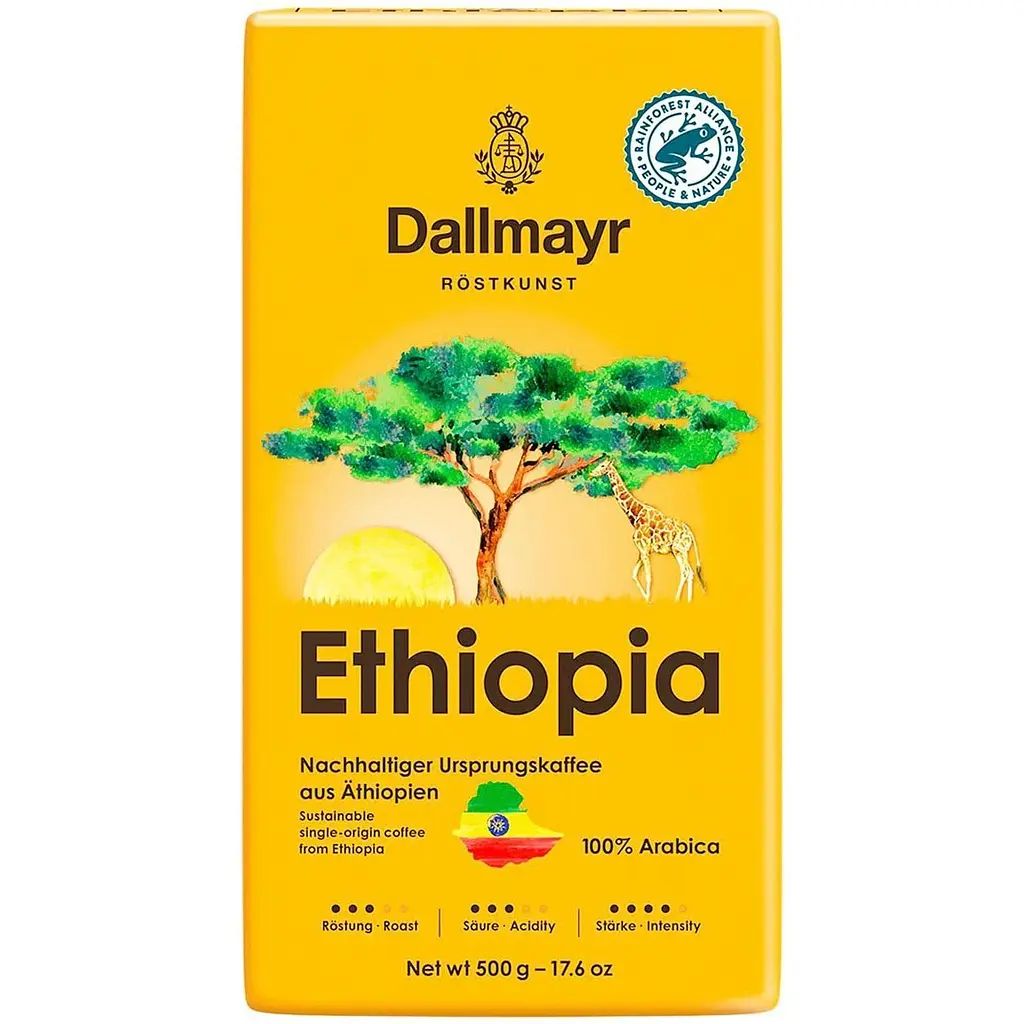 Основою кави Dallmayr Ethiopia з незвичайним, вишуканим ароматом, стали найблагородніші кавові зерна арабіки, які вирощені виключно в Ефіопії - батьківщині кави.