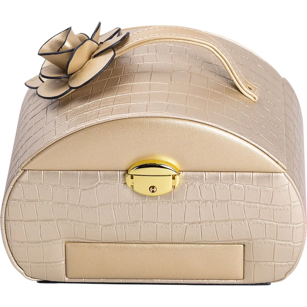 Оригінальний кейс-органайзер Yiwu для прикрас розміром 24x17x18 см, виконаний у вигляді невеликого саквояжика - стильне рішення не тільки для зберігання аксесуарів, на туалетному столику, а й як варіант для транспортування прикрас на виставки та презентації. Скринька має 6 відсіків, завдяки чому можна зручно розмістити каблучки, браслети, сережки, ланцюжки різного розміру. Внутрішнє оздоблення виконане з велюру і відмінно підходить для перлів, каміння, дорогоцінних металів та біжутерії.