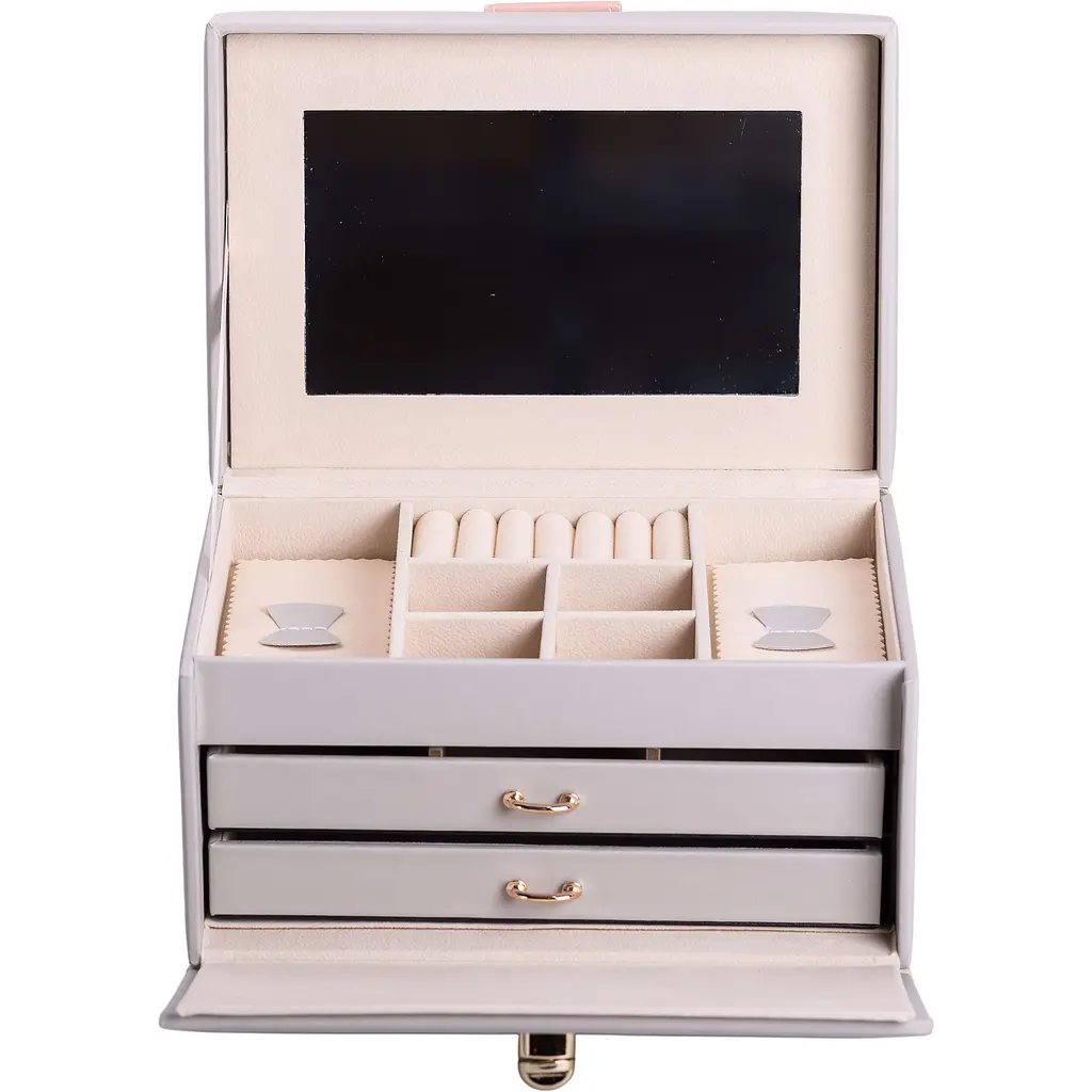 Органайзер доповнений дзеркалом у кришці, що робить його використання ще зручнішим. Скринька щільно закривається, є кнопка, що забезпечує додаткову зручність при транспортуванні.