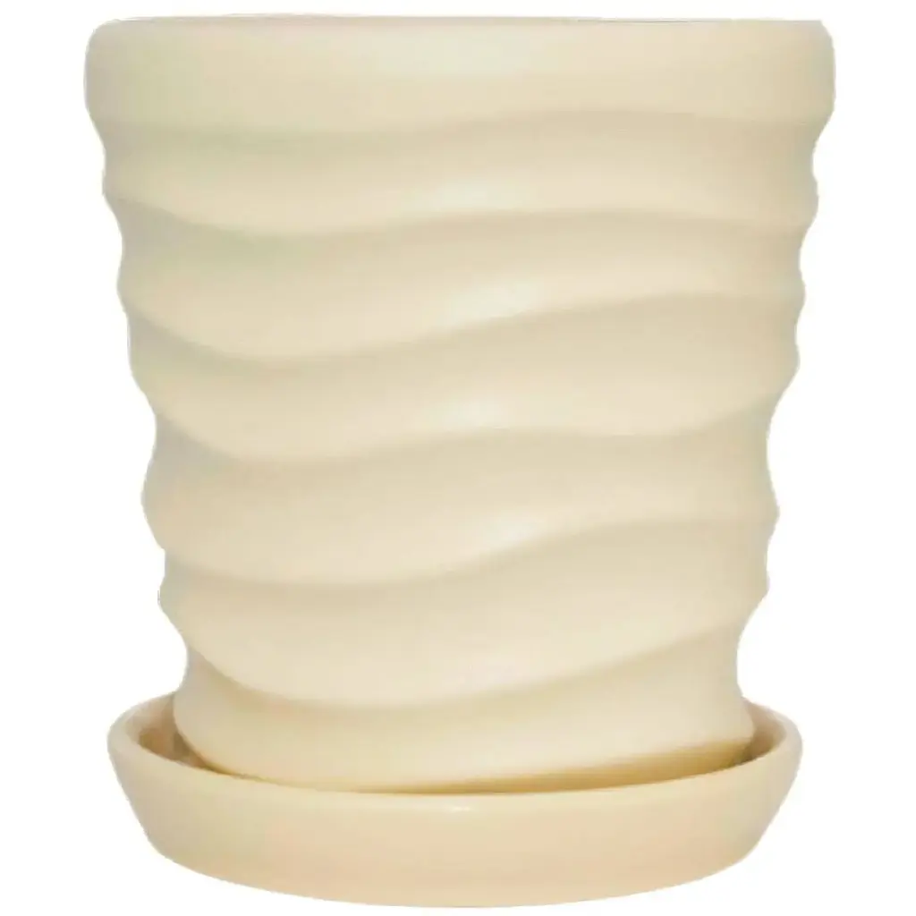 Керамічний горщик для квітів Nana Ceramics Дюна муар з глянцевою підставкою - це елегантний і природний вибір для любителів рослин, який допоможе створити затишок у будь-якому просторі.