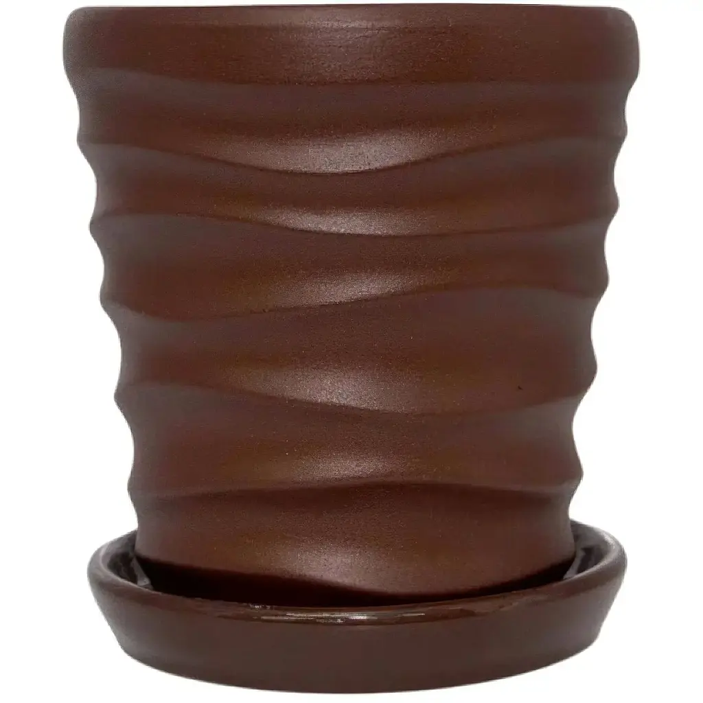 Керамічний горщик для квітів Nana Ceramics Дюна муар з глянцевою підставкою - це елегантний і природний вибір для любителів рослин, який допоможе створити затишок у будь-якому просторі.