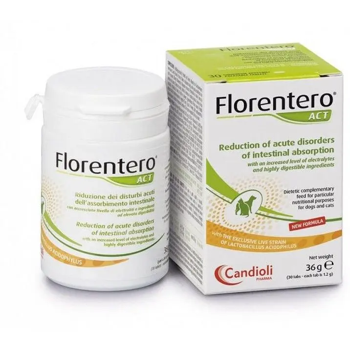 Candioli Florentero АСТ – добавка у вигляді таблеток, яка усуває гострі кишкові розлади у собак та котів. Засіб ефективний як підтримання оптимальної мікрофлори кишечника під час гострої діареї та наступного періоду відновлення.