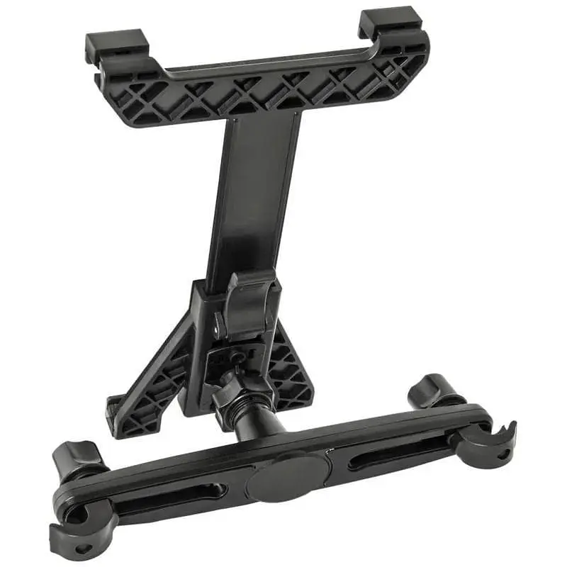 Універсальний автотримач, сумісний із планшетними пристроями, що мають діагональ від 7 до 10 дюймів включно. Компактний і простий в експлуатації, цей аксесуар без проблем монтується й демонтується. Встановлюється на підголівник сидіння автомобіля . Фіксатори, у які вставляється ґаджет, не закривають екран і не створюють перешкод під час перегляду. Головна перевага тримача — це те, що він може повертатися на 360 градусів, щоб користувач міг вибрати для себе найзручніший кут перегляду. Особливості: Кріплення на підголівник Сумісність: пристрої з діагоналлю від 7 до 10 дюймів Конструкція: Монолітна Кріплення: На підголівник