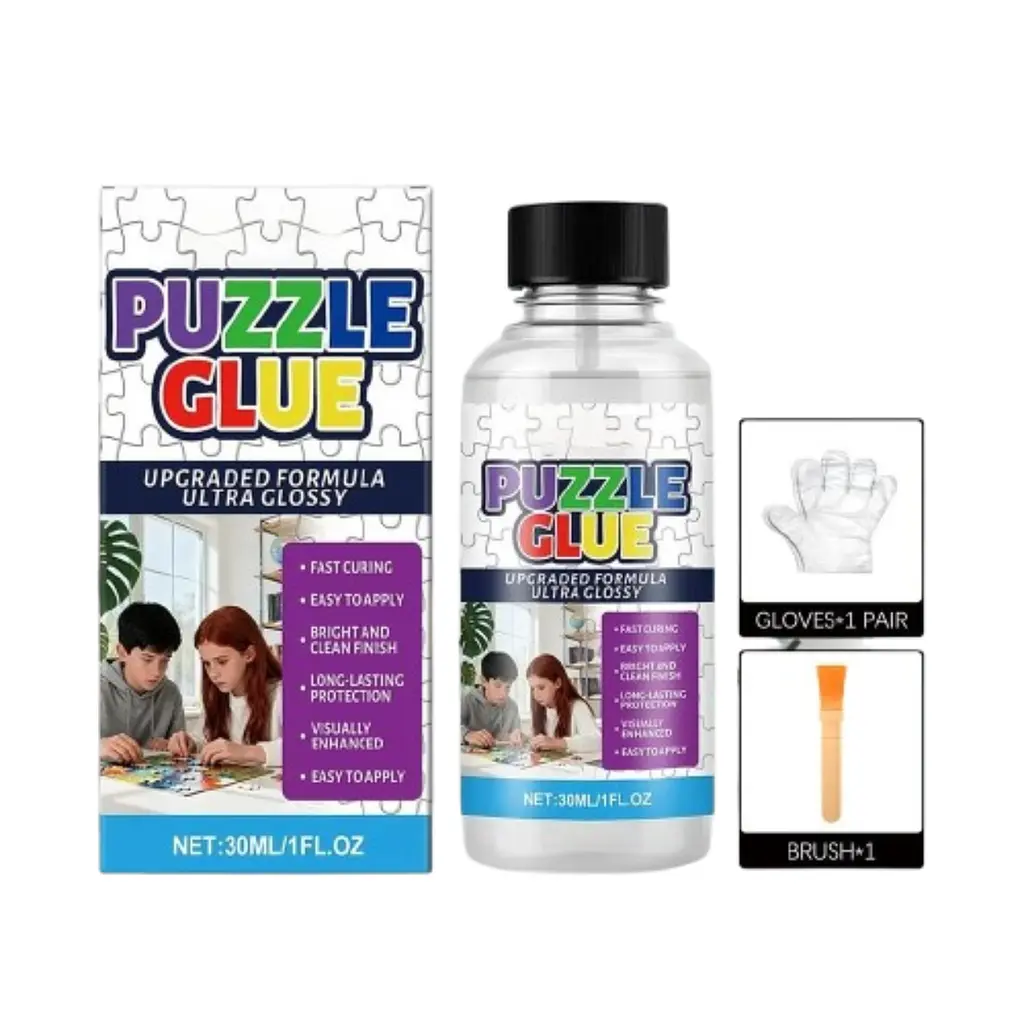 Прозорий клей для фіксації пазлів призначений для надійного склеювання та довготривалого збереження готових зображень. Засіб утворює міцний прозорий шар, який фіксує елементи пазла між собою, запобігаючи їх зміщенню та розпаданню. Підходить для використання після завершення складання пазла, дозволяючи зберегти результат роботи та використовувати його для зберігання або оформлення.
