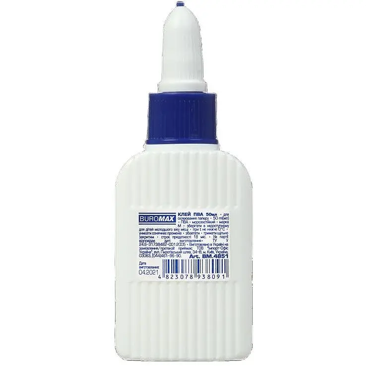 Клей ПВА Buromax (Буромакс) Jobmax з ковпачком-дозатором - незамінний помічник для використання в офісі, для дому та для творчості.