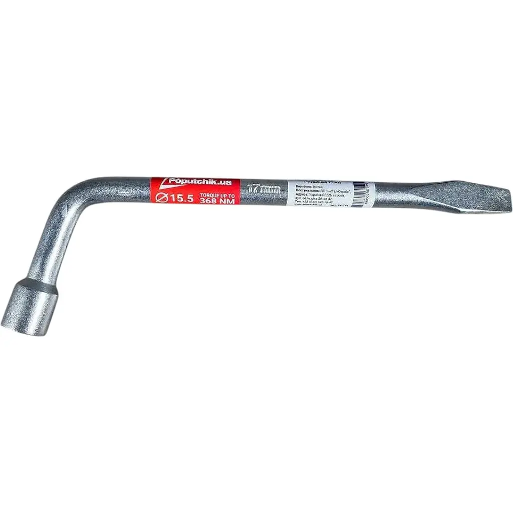 Міцний і довговічний балонний ключ Poputchik виготовлений зі сталі для забезпечення тривалого терміну експлуатації. Завдяки оптимальній довжині 350 мм і діаметру стержня 15.5 мм, інструмент дозволяє зручно та ефективно замінювати колеса. Універсальна конструкція підходить для всіх типів автомобілів.