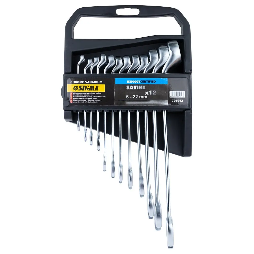 Ключі ріжково-накидні глибокі 12шт (7-15, 17, 19, 22мм) CrV polished SIGMA (6010241) виготовлені з хромванадієва стали, мають антикорозійне покриття з хрому, поверхня матова (сатиновая).