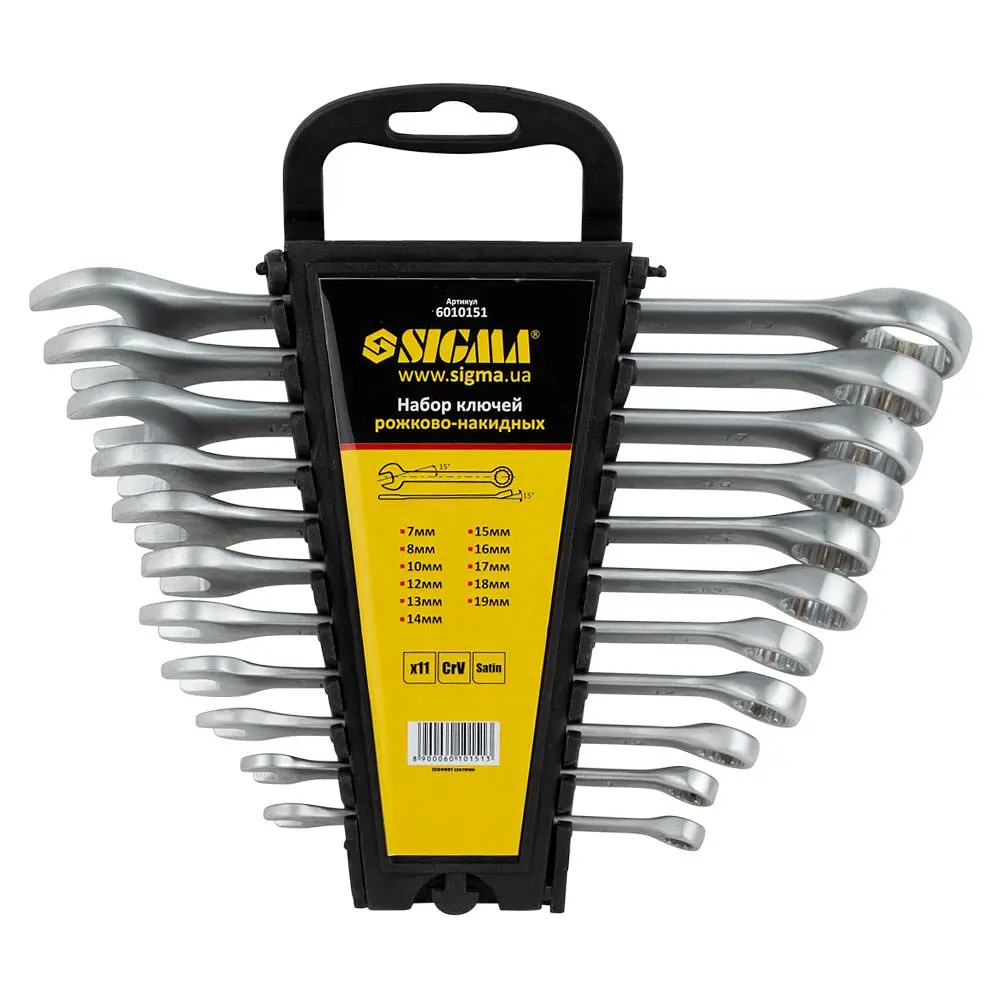Ключі рожково-накидні 11шт 7-19мм CrV satine SIGMA (TR6010151) є необхідним інструментом при складанні і розбиранні болтових з'єднань, що мають шестигранний профіль.