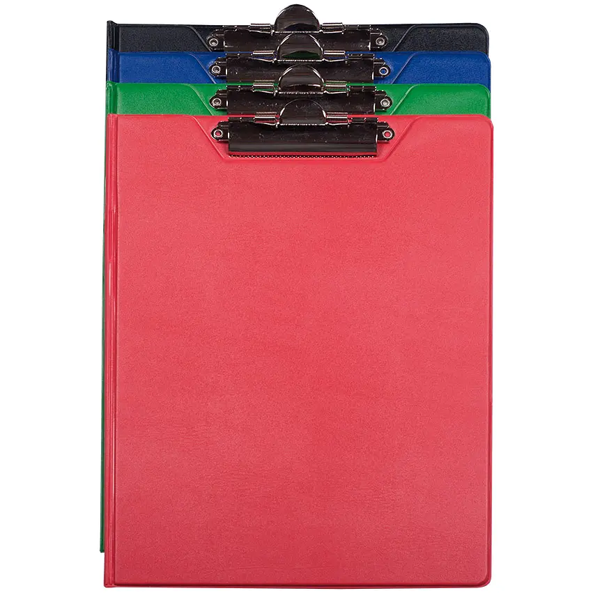 Кліпборд має виїмку для пальця, що полегшує його носіння та використання. Планшет вкритий захисною плівкою з PVC, яка надійно захищає його від механічних пошкоджень і впливів навколишнього середовища. Він оснащений місткою внутрішньою кишенею для нотаток, документів тощо.