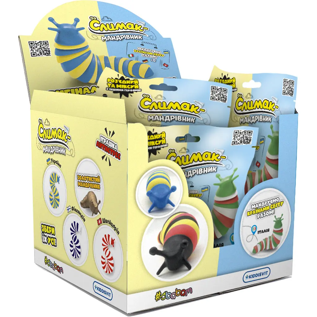 Іграшка-антистрес #sbabam Слимак-мандрівник - це незвичайна та цікава іграшка 3-в-1. Адже це іграшка-антистрес, колекційна фігурка, а ще вона допомагає знайомитися з прапорами країн. Малюкам буде весело грати з такою яскравою іграшкою, вона допоможе розвивати дрібну моторику. А дорослим буде весело та комфортно знімати стрес. Долучайтеся до веселих мандрів. Мандруйте разом зі слимаком. Ви познайомитеся з прапорами Італії, Німеччини, Швейцарії, Фінляндії та України.