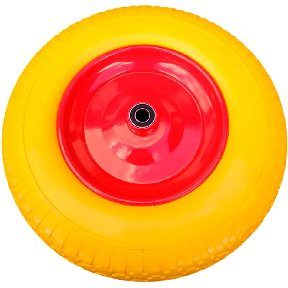 На відміну від пневматичних коліс, це колесо не потрібно підкачувати або регулярно перевіряти тиск. Воно завжди готове до роботи, що значно економить ваш час та зусилля. Поліуретан - це дуже щільний матеріал, який здатний витримувати значні навантаження, не деформуючись. Це робить колесо ідеальним для перевезення важких будівельних матеріалів, таких як пісок, цемент, щебінь або каміння.