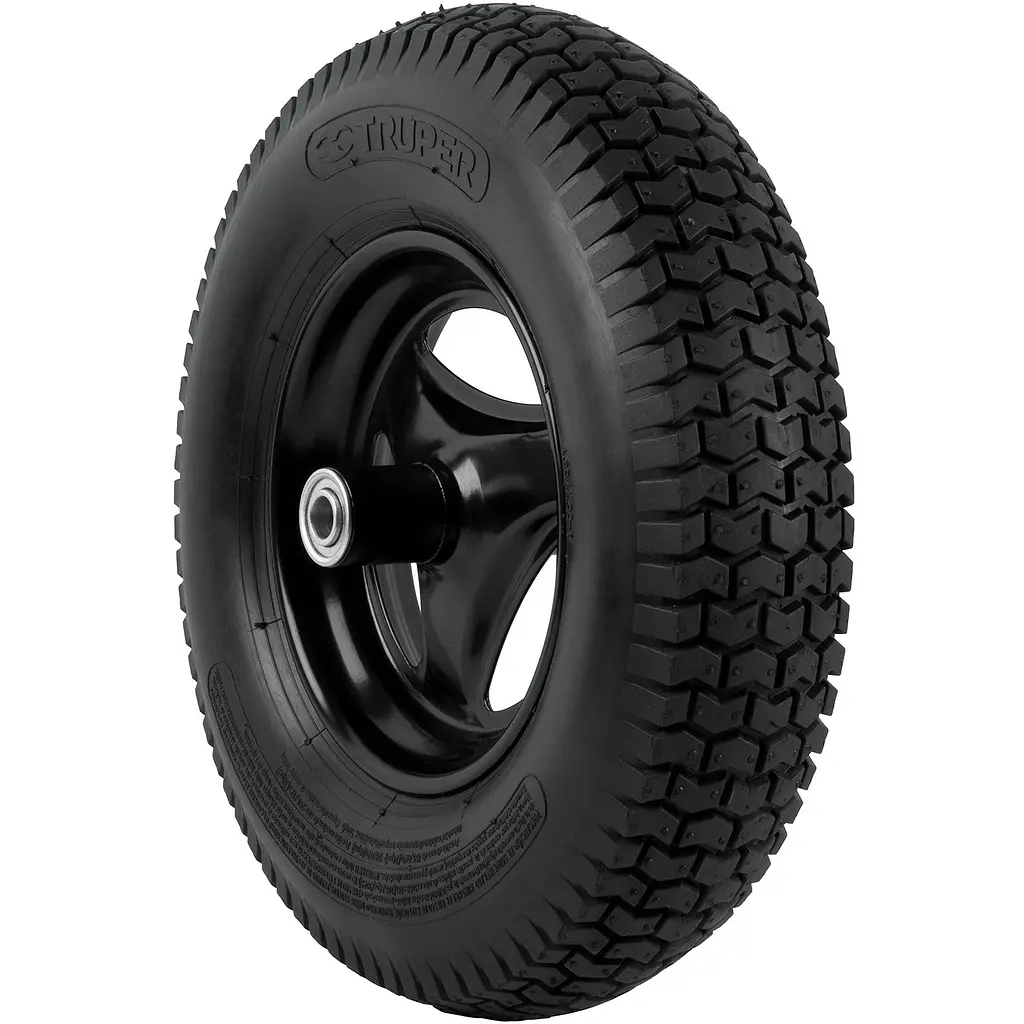 Колесо виготовлене зі 100% поліуретану, не вимагає підкачування і не боїться проколів. Диск виготовлений зі сталі з покриттям порошковою фарбою. Підходить для більшості стандартних моделей садових та будівельних тачок.