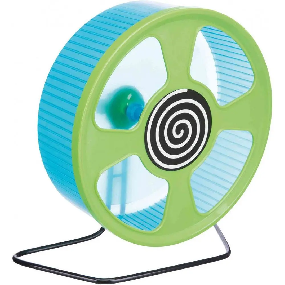 Колесо тренажерне для маленьких гризунів Trixie виготовлене з пластику. Завдяки оптимальному розміру колеса захищає хребет гризуна від травм. Безпечний стенд із закритою бічною стінкою не дасть тварині застрягти. Можна використовувати на підлозі або підвішувати до стін клітки.