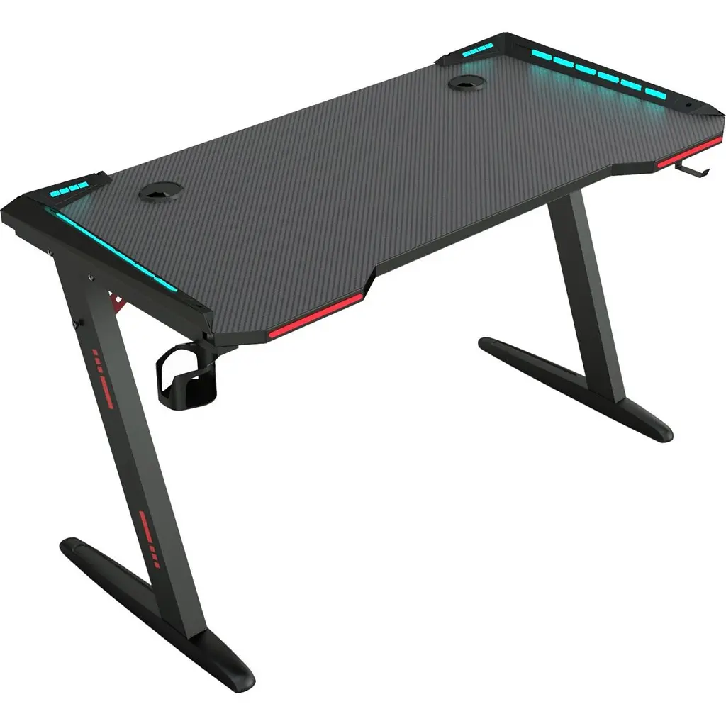 GT Racer T-1226 пропонує безліч корисних аксесуарів, таких як тримач для навушників та підстаканник, які роблять використання столу ще більш комфортним. Також передбачено отвір для організації кабелів, що допомагає підтримувати порядок на робочій поверхні. LED підсвітка з можливістю зміни кольору додає естетики та створює унікальну атмосферу під час гри.