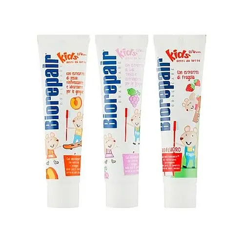Зубна паста «Веселе мишеня» виноград - Biorepair Kids Milk Teeth, 50 мл + Зубна паста «Веселе мишеня» персик - Biorepair Kids Milk Teeth, 50 мл + Зубна паста «Веселе мишеня» суниця - BioRepair Kids Milk Teeth, 50 мл