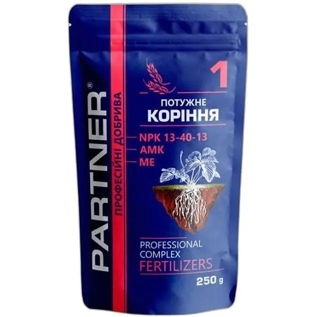 Комплексне добриво Потужне коріння - це водорозчинні сполуки фосфору, що забезпечують розвиток сильної кореневої системи, підвищують зимостійкість озимих культур. Співвідношення комплексу NPK+АМК+МЕ підвищує водопоглинання рослин, значно покращує якість продукції на овочевих, ягідних, плодових, зернових, технічних та баштанних культурах. Амінокислоти допомагають рослинам переносити стрес від нічних перепадів температур на ранніх етапах вегетації.