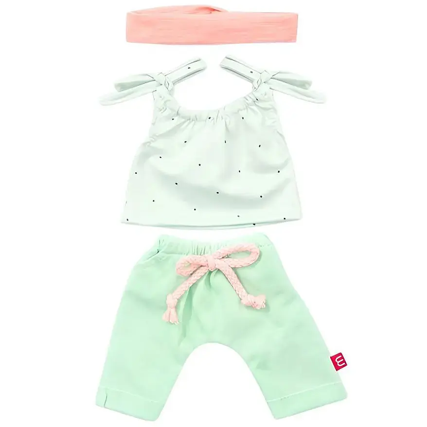 Стильний комплект для ляльки Miniland 38 см складається зі штанців, маєчки та пов'язки. Одяг виготовлено з високоякісних текстильних матеріалів безпечних для дітей. Набір можна прати вручну.