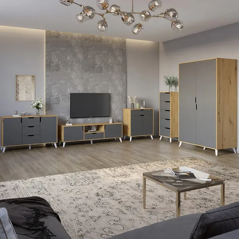 Модульний комплект продуманий для різних завдань зберігання - від одягу і техніки до дрібних аксесуарів. Ідеально підходить для віталень, спалень або сучасних студійних просторів.