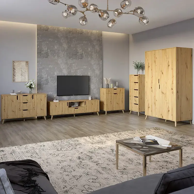 Модульний комплект продуманий для різних завдань зберігання - від одягу і техніки до дрібних аксесуарів. Ідеально підходить для віталень, спалень або сучасних студійних просторів.