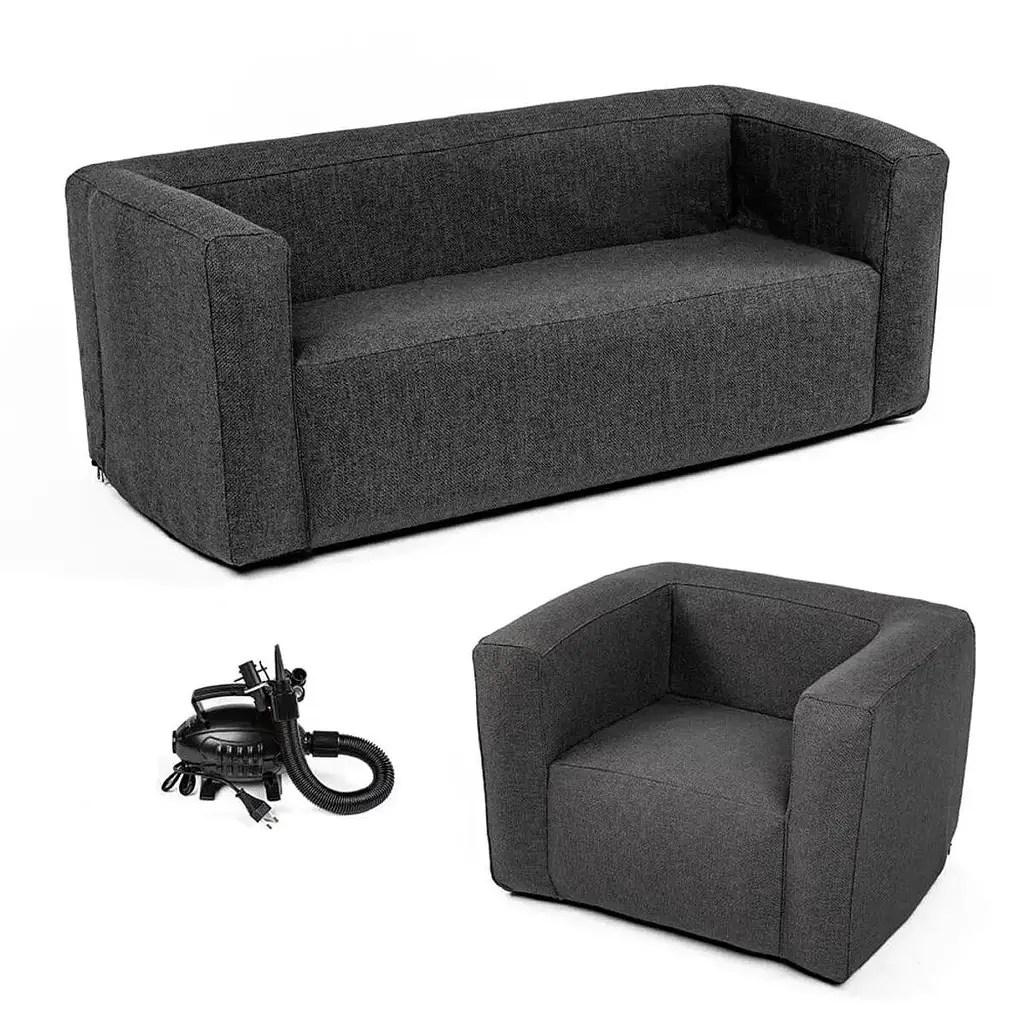 Пропонуємо вашій увазі надувні меблі, які поєднують сучасний дизайн та практичність. Основа меблів виготовлена із зносостійкого поліуретану, а верхнє покриття - з поліестерової мішковини, яка відрізняється приємною текстурою та стійкістю до пошкоджень. На відміну від звичайних меблів, надувні значно легші у транспортуванні: у здутому вигляді вони займають мінімум місця, що є ідеальним рішенням для переїздів або зміни інтер'єру.