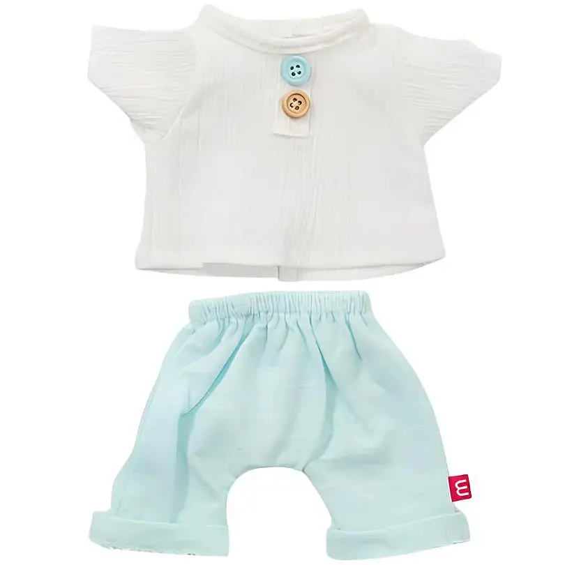 Стильний комплект для ляльки Miniland 38 см складається зі штанців і маєчки. Одяг виготовлений із високоякісних текстильних матеріалів безпечних для дітей. Набір можна прати вручну.