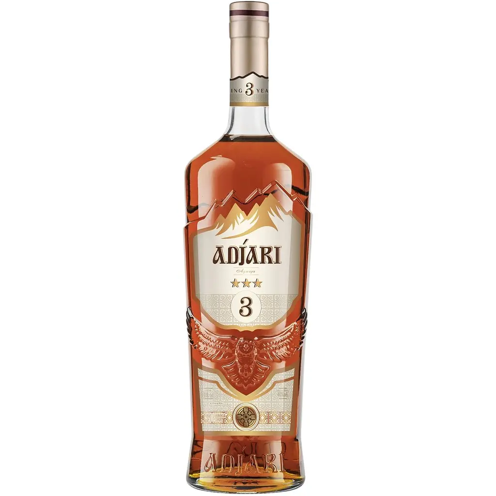 Коньяк Adjari - класичний коньяк Adjari 3-річної витримки, з м'яким ванільно-карамельним відтінком, фруктовими та шоколадними нотками та ароматом інжиру. Колір насичений бурштиновий. Смак дуже м'який і округлий.