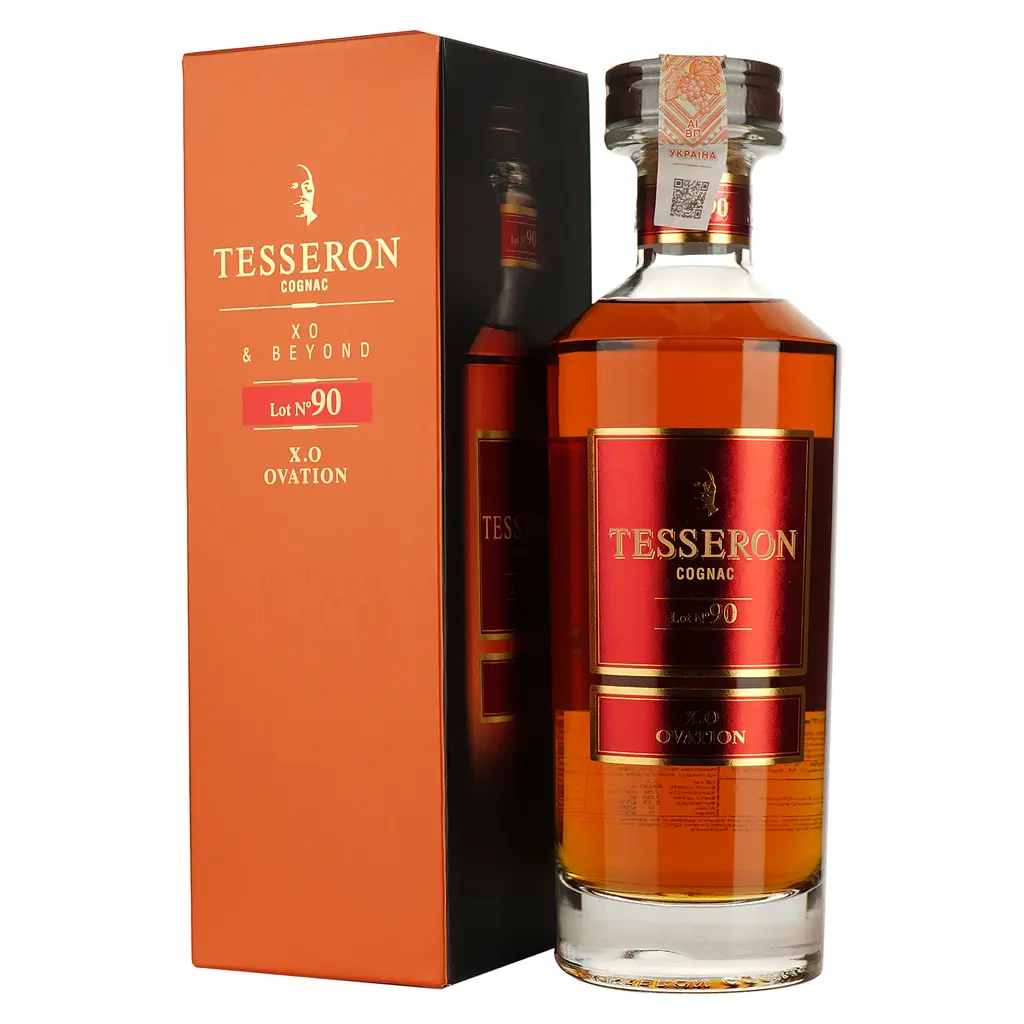 Коньяк Cognac Tesseron (Тессерон) Lot 90 XO Ovation виробляється шляхом подвійної дистиляції винограду Уні Блан, вирощеного у трьох районах регіону Коньяк: Гран Шампань, Пті Шампань та Фен Боа. Після пресування винограду сік ферментується протягом 2-3 тижнів, у процесі чого дикі дріжджі перетворюють цукор на алкоголь; все відбувається без додавання цукру та сірки. У цьому етапі рівень алкоголю виноматеріалу становить 7-8%. Дистиляція відбувається у традиційних шарантських мідних перегінних кубах. Повинні відбутися дві дистиляції. Як наслідок, утворюється безбарвний напій, рівень алкоголю якого становить близько 70%. Коли коньяк взаємодіє з дубовою бочкою та повітрям, він випаровується (близько 3% на рік), таким чином повільно зменшується рівень алкоголю, а коньяк отримує колір. Унікальний характер Лоту №90 надає тривалої витримки в дубових бочках, що надає йому насиченості та багатогранності.
