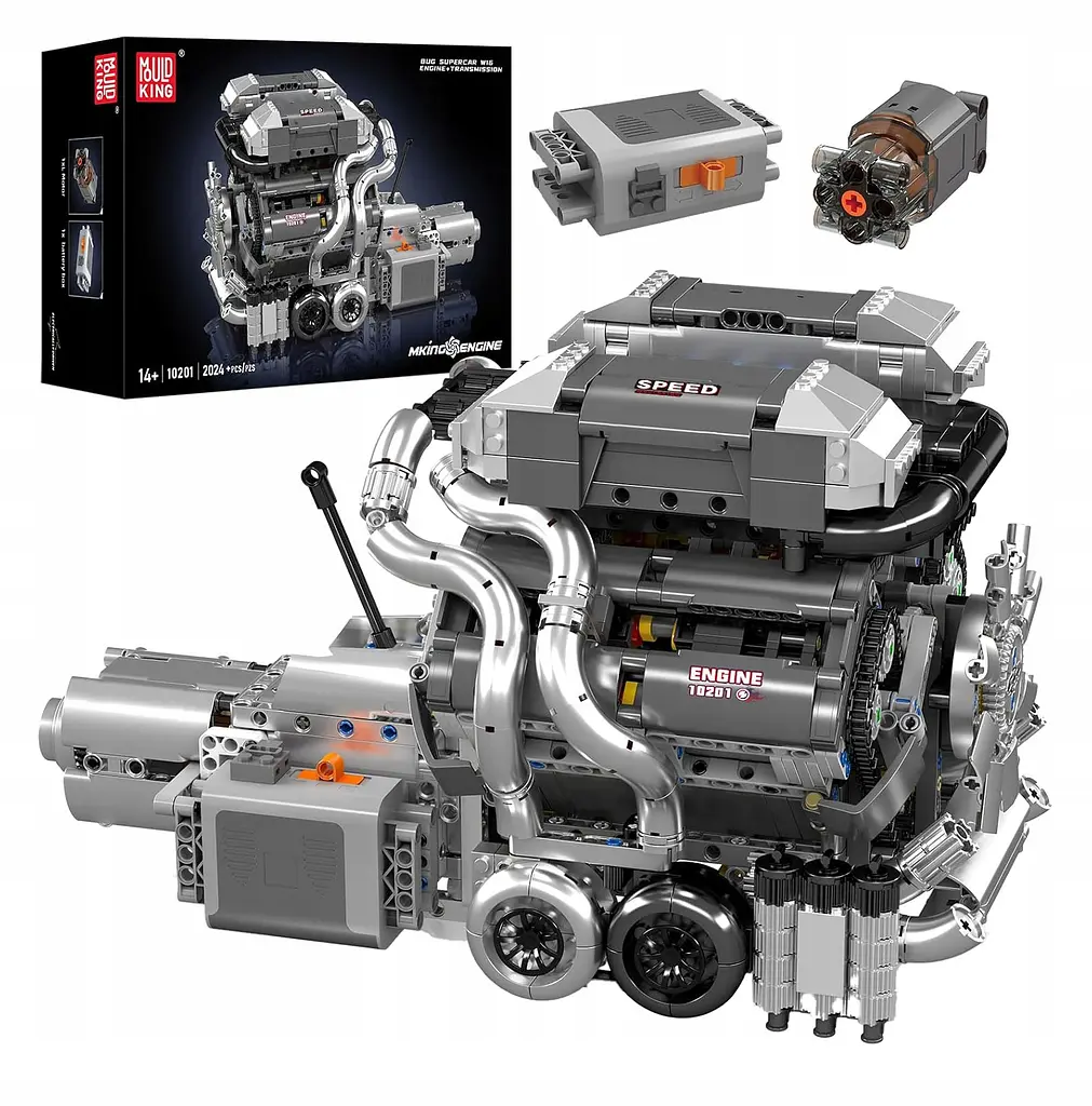 Пориньте у світ високих технологій і гіперкарів із дитячим конструктором двигун Bugatti W16 від Mould King. Ця масштабна модель завдовжки понад 35 см, що складається з 2024 деталей, дає змогу зібрати точну механічну копію одного з найвідоміших двигунів внутрішнього згоряння в історії автопрому.