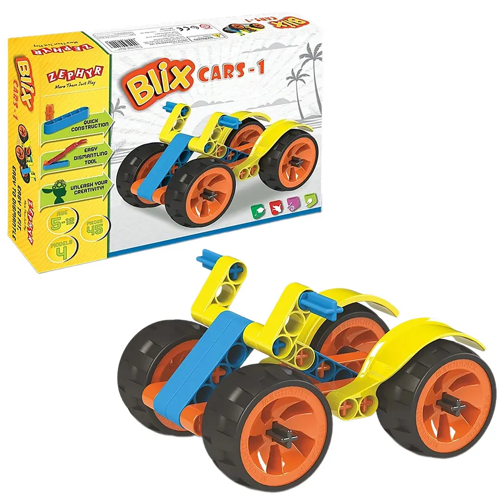 Конструктор Zephyr Blix Cars-1 - стартовий набір серії Blix, можливо, невеликий за розміром, але великий у своїх можливостях. 4 великі шини та спеціально розроблені бризковики надають творінню надзвичайну привабливість. Це фантастичний перший крок, щоб познайомити дитину з конструкційною системою та зміцнити її пізнавальні навички.