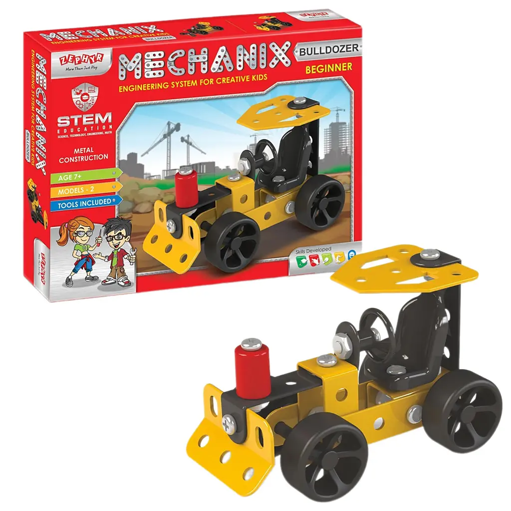 Конструктор Zephyr Mechanic Bulldozer - це металевий розвивальний конструктор, з яким дитина зможе гратися протягом тривалого часу, зібравши при цьому почергово 2 різноманітні моделі бульдозерів, або ж придумати власні конструкції з запропонованих деталей.