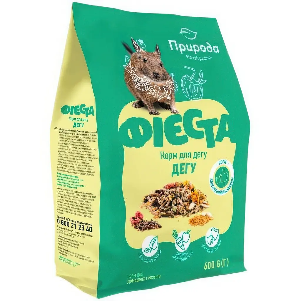 Корм для гризунів Природа Фієста Дегу - це повноцінний корм, який забезпечить швидке та тривале насичення вашому вихованцю.