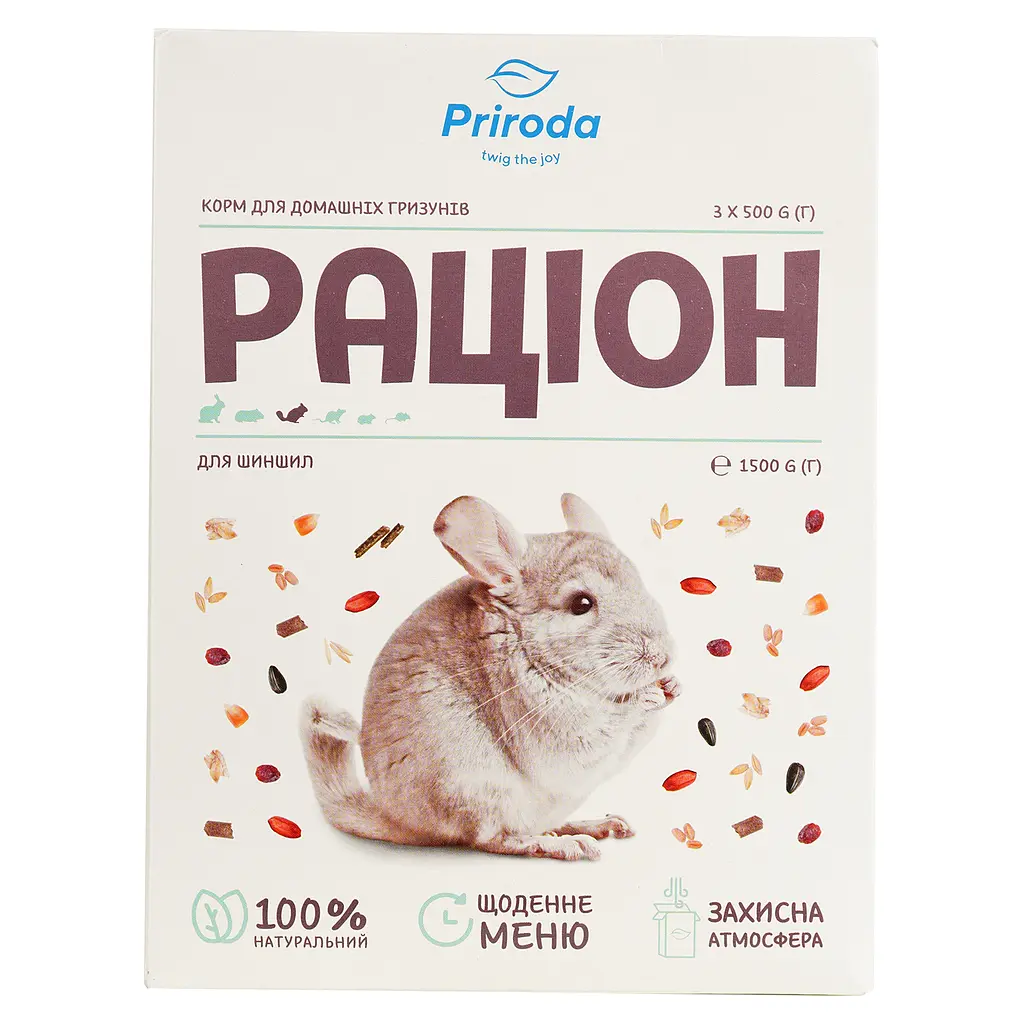 Корм для шиншил Природа Раціон - це повноцінний корм, який забезпечить швидке та тривале насичення вашому вихованцю.