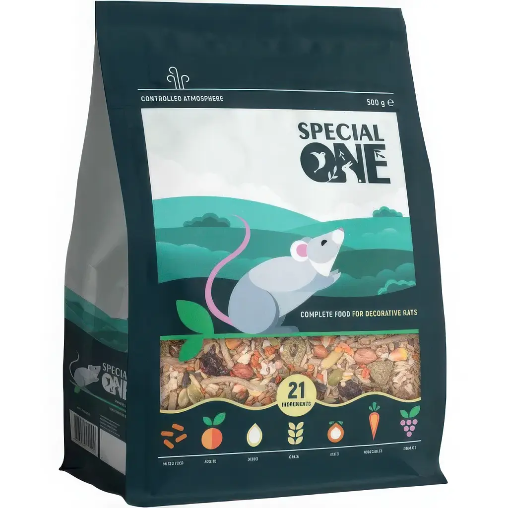 Корм Special One - це повнораціонний корм, рецептура якого розроблена спеціально для декоративних пацюків, що утримуються в домашніх умовах.
